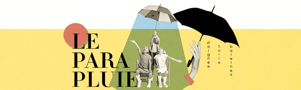 Si l’ombrelle, souvent en soie, se veut légère, son frère le parapluie est d’abord conçu avec de la toile cirée.