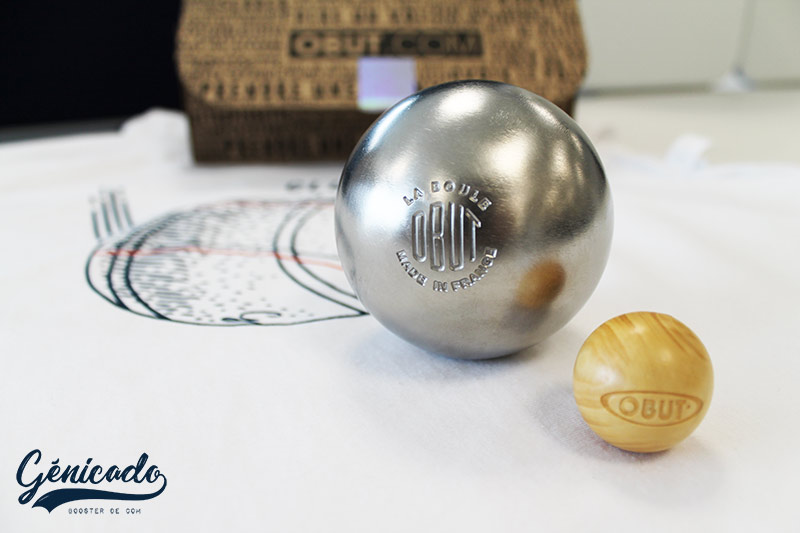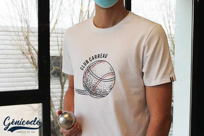 Pour l’occasion nous nous sommes challengés sur notre palette de compétences. C’est le mois du made in France chez Génicado. Nous offrons en ce moment une triplette de boules OBUT pour toute commande de goodies français (sous conditions et jusqu’au 15 mars 2021). Nous avons donc choisi un t-shirt en coton bio fabriqué en France. Notre pôle graphique a ensuite créé un visuel faisant écho à notre opération. Une création validée par notre directeur artistique et le pôle marketing. Nous avons ensuite réalisé la sérigraphie sur textile puis communiqué notre opération en s’appuyant sur ce textile fraichement sérigraphié. Un véritable exercice de style ! Une façon de vous montrer que la communication par l’objet ce n’est pas que pour les autres, c’est aussi pour nous !