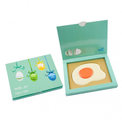 Offrir des œufs en chocolat ça fait toujours plaisir ! Mais vous pouvez également marquer le coup et retenir encore plus d’attention si vous offrez un objet insolite ! Comme cette plante dans un pot en forme d’œuf pour faire éclore votre communication écoresponsable et valoriser vos nouveaux projets. Vous mettrez en valeur le fait que vos projets se développent et perdurent avec l’usage de matière recyclable et réutilisable. Pour le côté gourmand, surprenez vos clients : jouez sur l’humour et la légèreté en proposant une boite en carton personnalisable pour faire passer votre message à l’intérieur de laquelle vous trouverez un chocolat en forme d’œuf sur le plat.