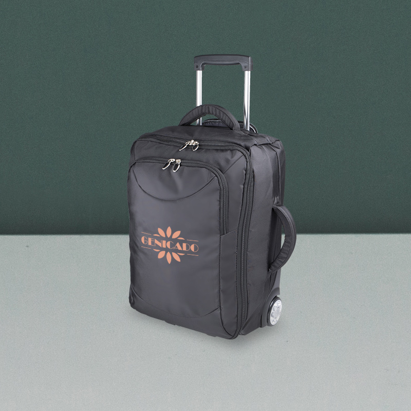 Pour vos collaborateurs ou clients qui voyagent régulièrement, la valise est un cadeau publicitaire qui les accompagnera partout tout en arborant votre logo ou visuel publicitaire. Ce type d’objet publicitaire vous offrira de la visibilité dans les gares, les aéroports, partout où vos cibles voyageront! Une valise trolley est un cadeau très pratique notamment pour les voyages d’affaires elle permettra d’emporter quelques vêtements et un ordinateur portable afin d’avoir tout le nécessaire pour des rendez-vous publicitaires.