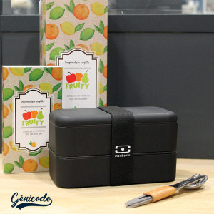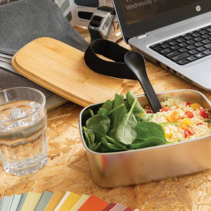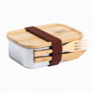 Lunch box personnalisable avec couverts inclus | 0.9 L | Acier, bambou et plastique | - Son petit prix